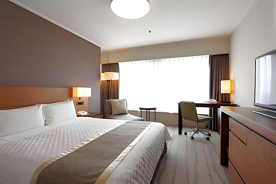 Premier Grand Deluxe King Single Non-Smoking is 377 square feet and includes a king-size bed 150-183 width plus desk, hairdryer, and slippers.
